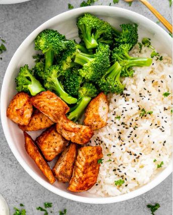 - While the salmon cooks, prepare jasmine white rice according to package instructions.
