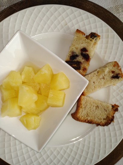 Sliced Banana bread and Tropical Fruits Choices