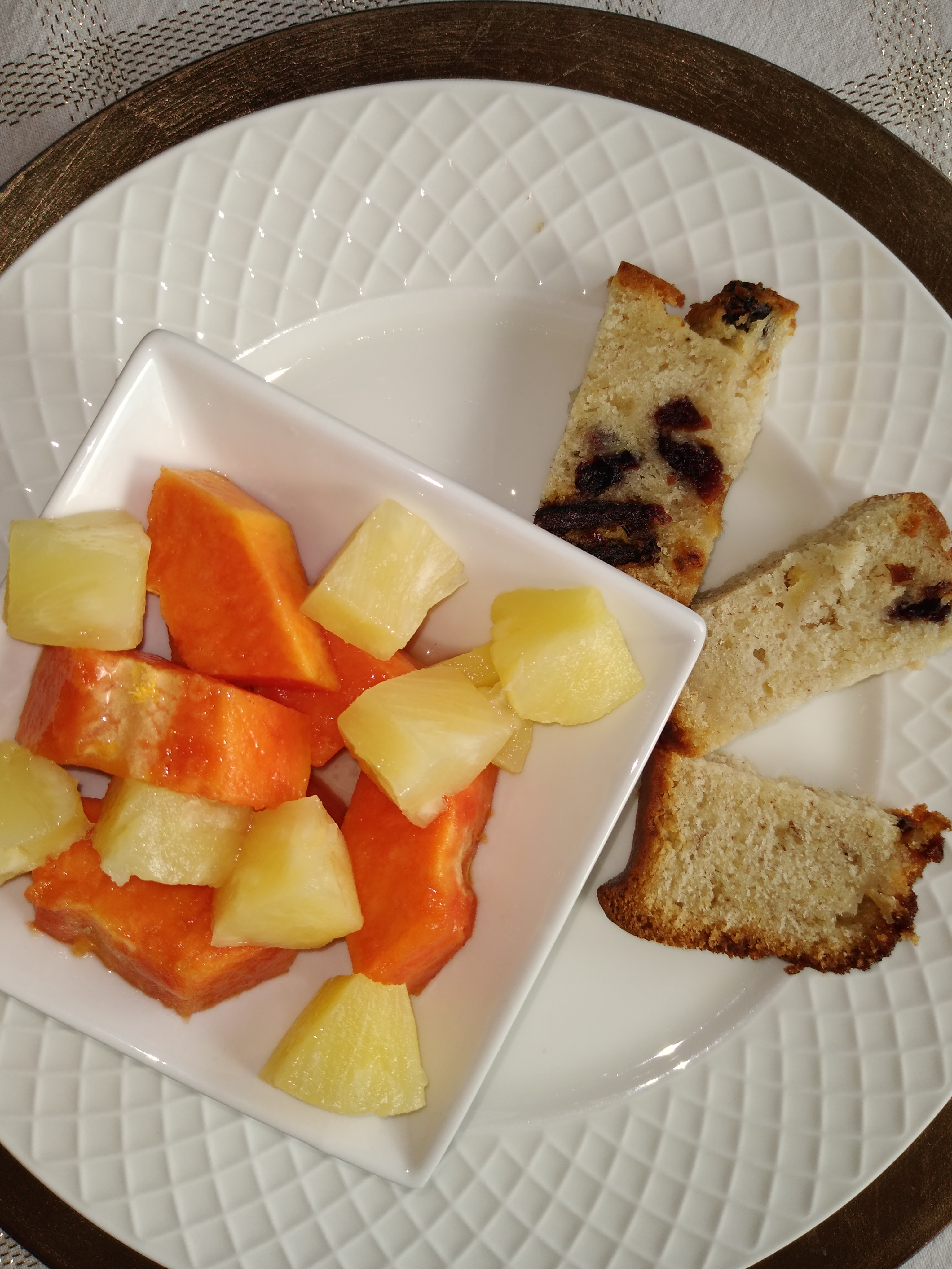 Sliced Banana bread and Tropical Fruits Choices